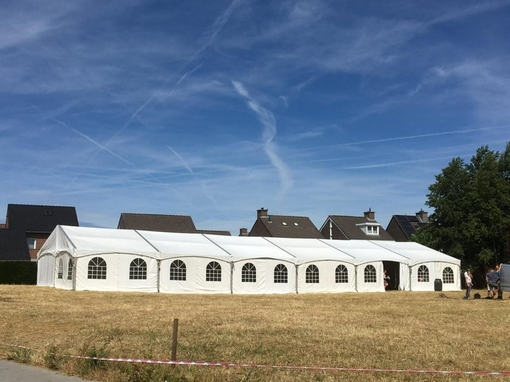 Aluhallen zijn professionele luxe tenten met een aluminium frame en een zelfdragende constructie. Door het lagere gewicht van de dakspanten kan met dit soort tenten een brede overkapping gerealiseerd worden. Deze aluhal tent is uitermate geschikt voor grote tuinfeesten, bedrijfsfeesten, bruiloften, festivals, werktent, en tijdelijke opslag. Door de sterke constructie van deze aluhal zijn er geen midden palen nodig. Dit geeft een mooie ruime uitstraling van de luxe tent.
