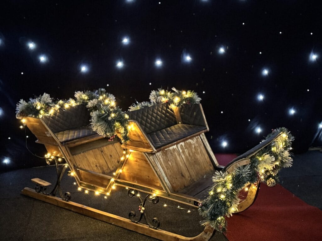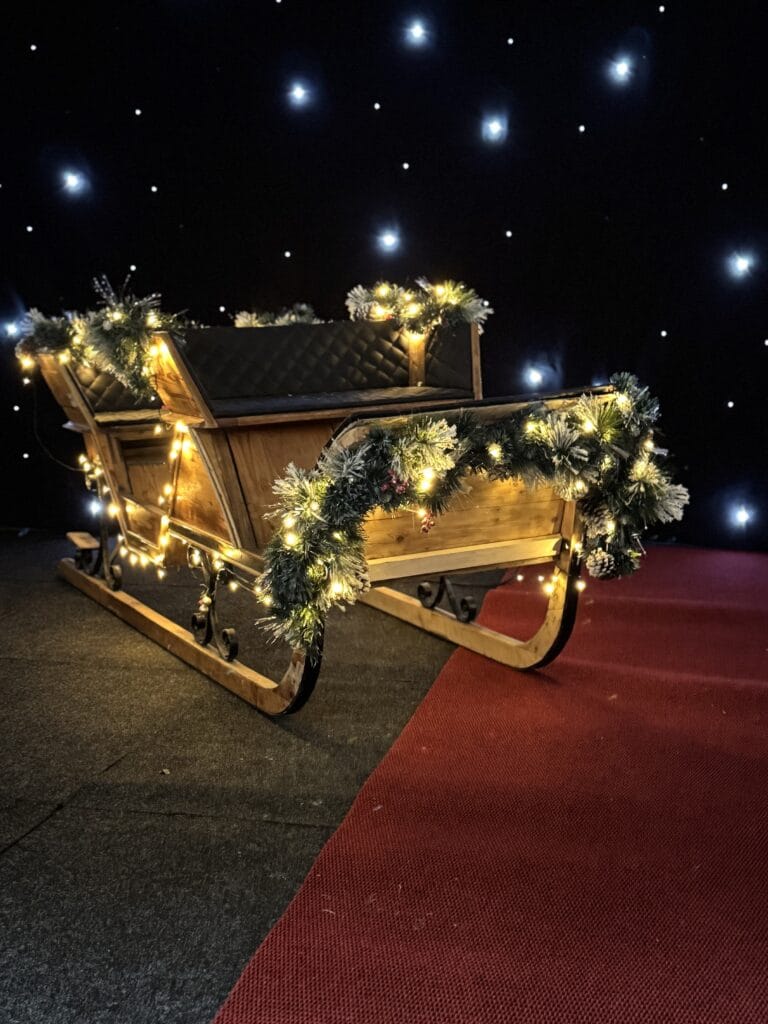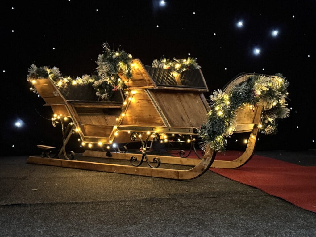 Tevens is hij voorzien van lichtjes zodat deze ook in de donkere avonden een plaatje is om te zien. U kunt de arrenslee als decoratie huren of om met de kerstman op de foto te gaan.