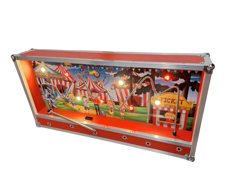 Kom jij zonder af te gaan aan de finish? Of gaat de zoemer en moet je opnieuw proberen. Volg de baan, en kom steeds een stapje verder iedere rust plaatst  is weer een stapje dichter bij en kom zonder dat de zoemer afgaat aan de finish.