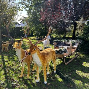 Deze prachtige kerstman in zijn slee en zijn rendieren met verlichting , is het pronkstuk van ieder event.