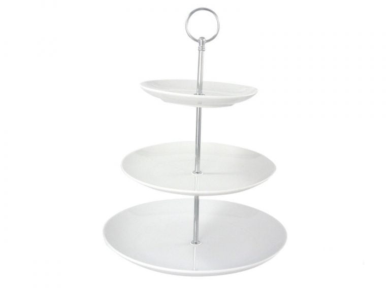 Op deze etagère presenteert u de lekkerste hapjes op tafel. De etagère bestaat uit 3-laags wit porselein.