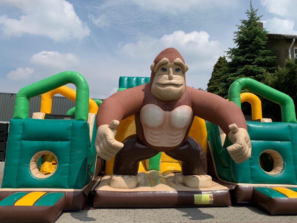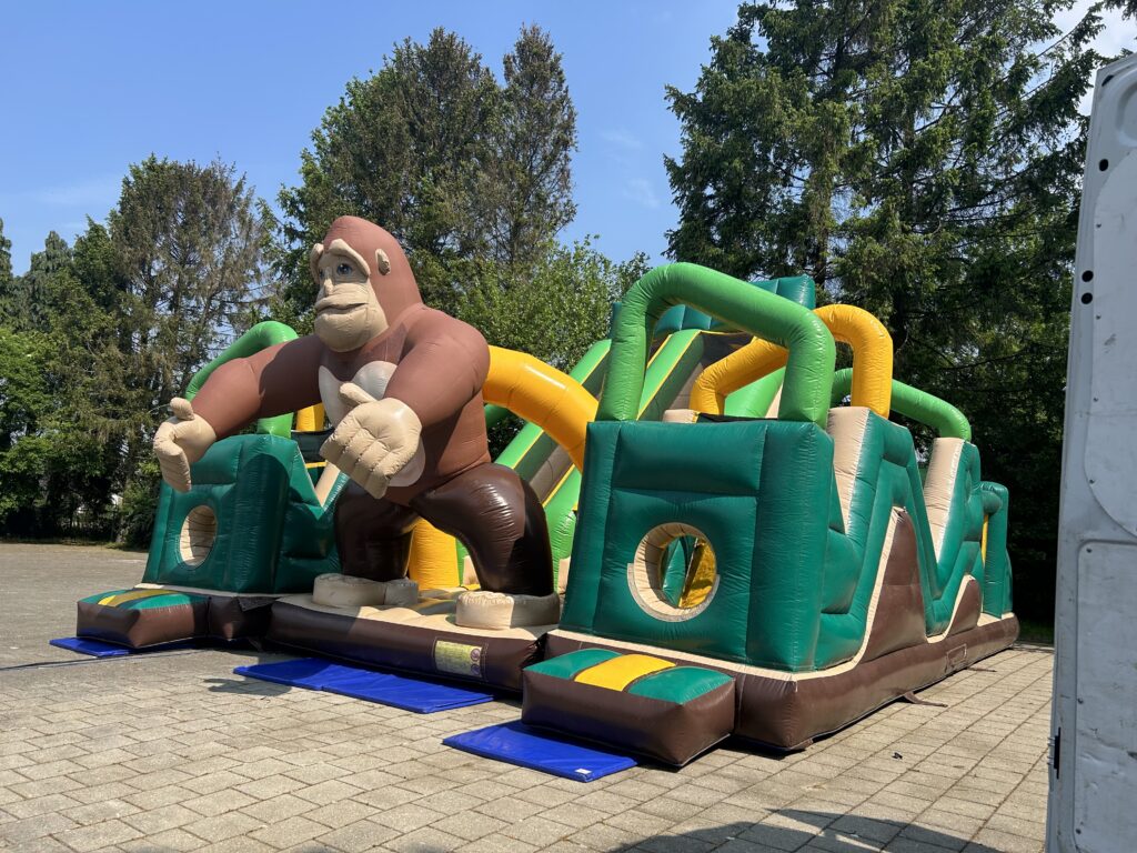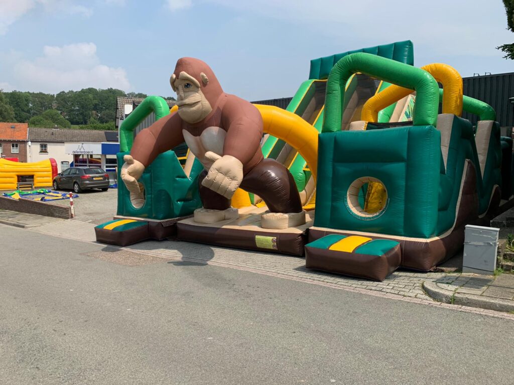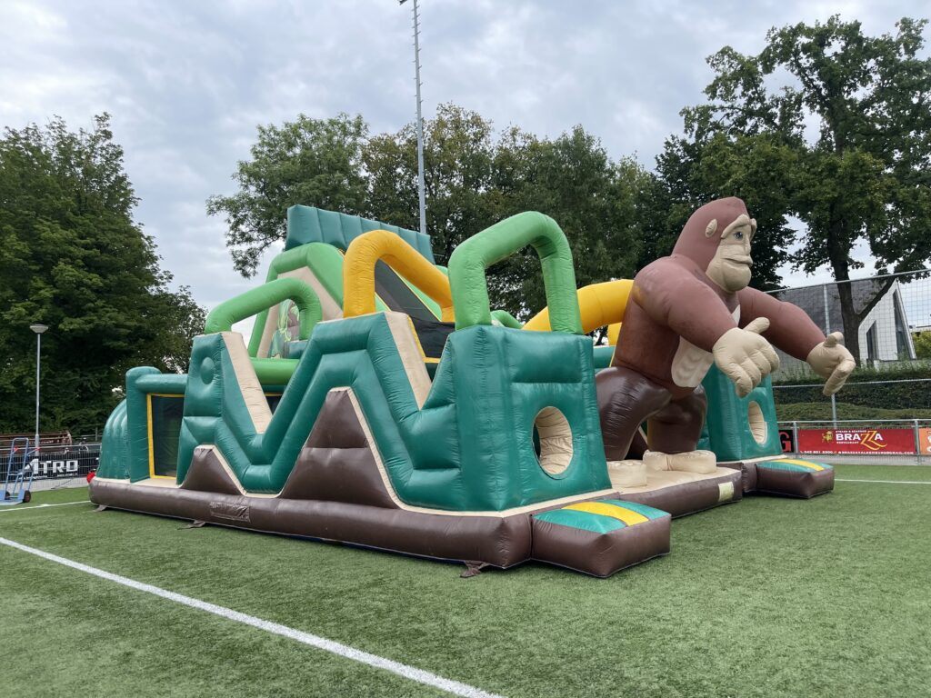 Niet alleen springen, maar ook klauteren en glijden in dit parcours. Deze mega jungle battle is een echte blikvanger op feesten en evenementen.