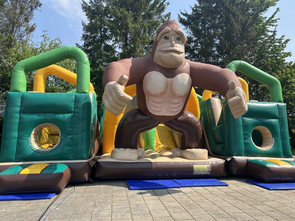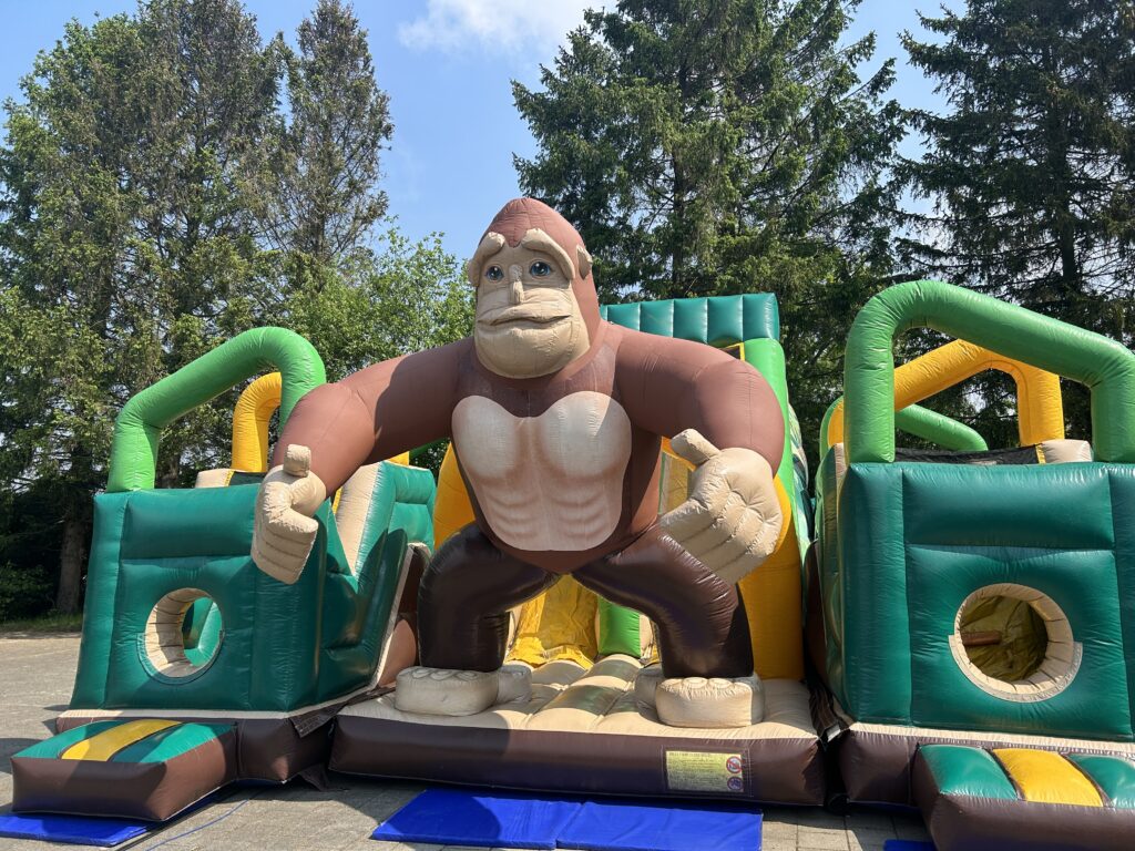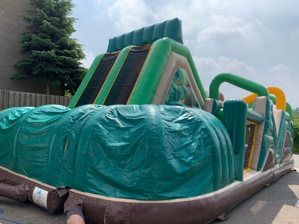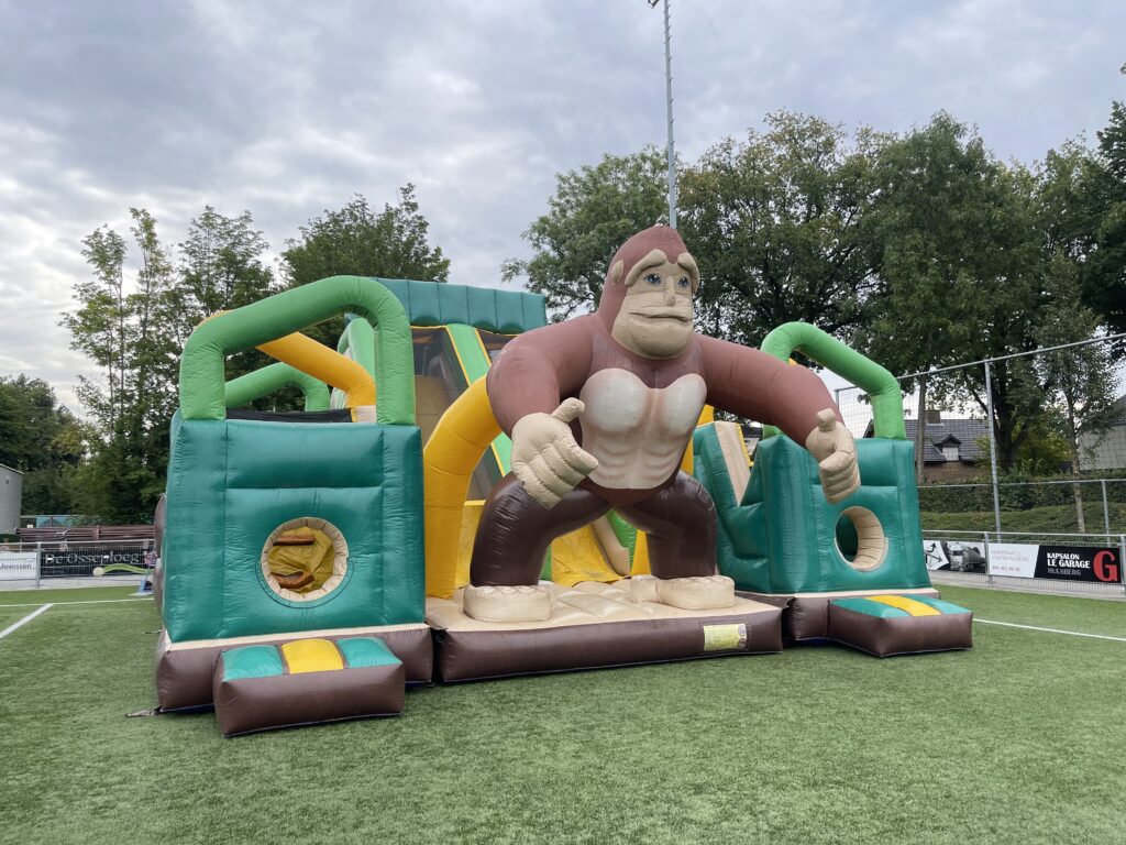 Niet alleen springen, maar ook klauteren en glijden in dit parcours. Deze mega jungle battle is een echte blikvanger op feesten en evenementen.