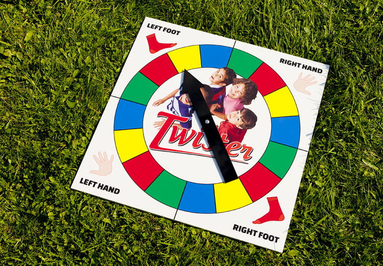 Deze mega Twistermat met Bord bestaat uit 4 speelhoeken waarop tegelijkertijd gespeeld kan worden. Dit spel wordt compleet met speelbord geleverd.
