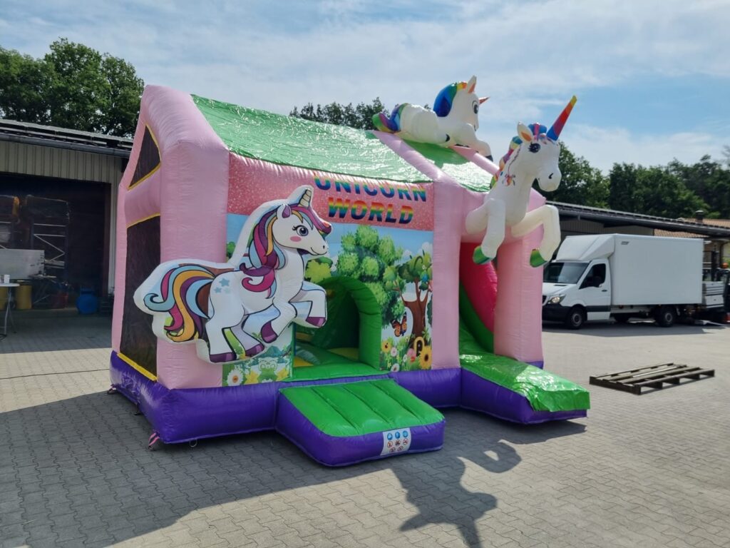 Wanneer je ene unicorn feestje wilt organiseren dan zorgt ons grote unicorn springkussen met glijbaan voor een betoverende en adembenemende ervaring. Laat de fantasie van kinderen tot leven komen terwijl ze springen, glijen en spelen op dit kleurrijke en unieke eenhoorn stormbaan . Kom ons eenhoorn springkussen huren en ervaar het zelf.
