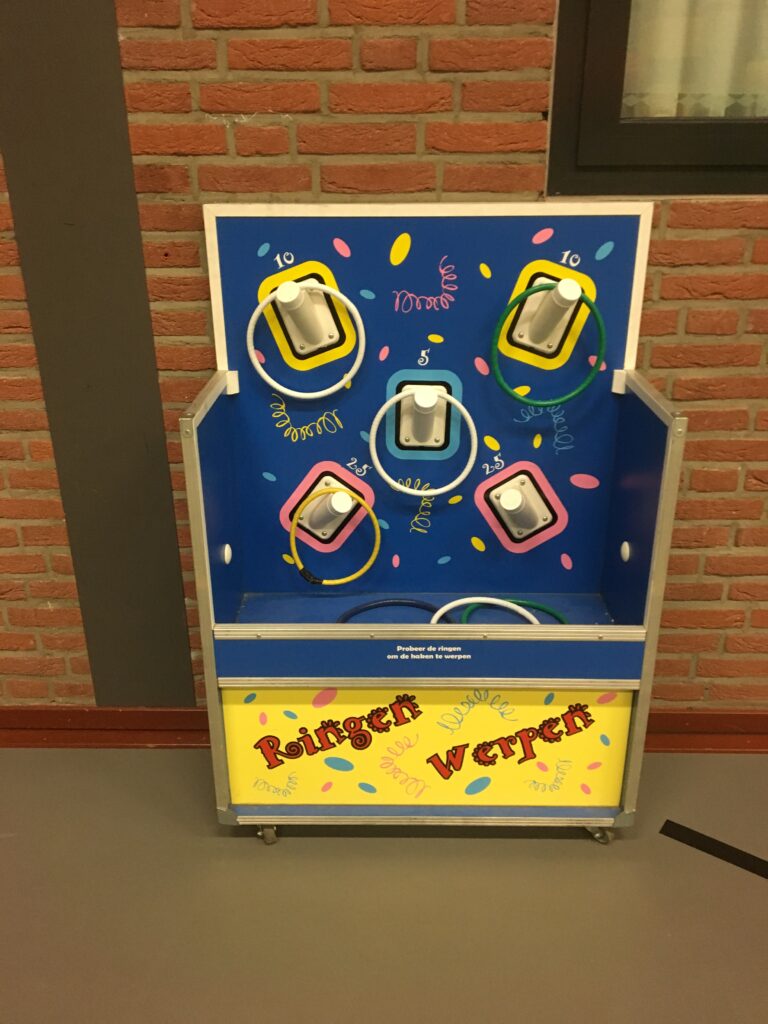 Werp de ringen om de haken. Probeer de ringen om de beugels te gooien. Dit spel is een onderdeel van onze serie “Oud Hollandse Spelen in Nieuw Design”
