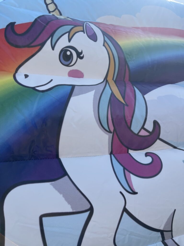 Met het opblaasbare springkussen met Unicorn thema zorg je voor urenlang speelplezier. Dit kussen is ideaal voor kinder- en buurtfeestjes. De felle kleuren en diverse animaties geven een vrolijke uitstraling aan het kussen. Het kussen is door zijn afmetingen geschikt voor veel tuinen en opritten. Kortom een leuk kussen dat garant staat voor uren speelplezier. Het zal bijdragen aan een onvergetelijk feest.