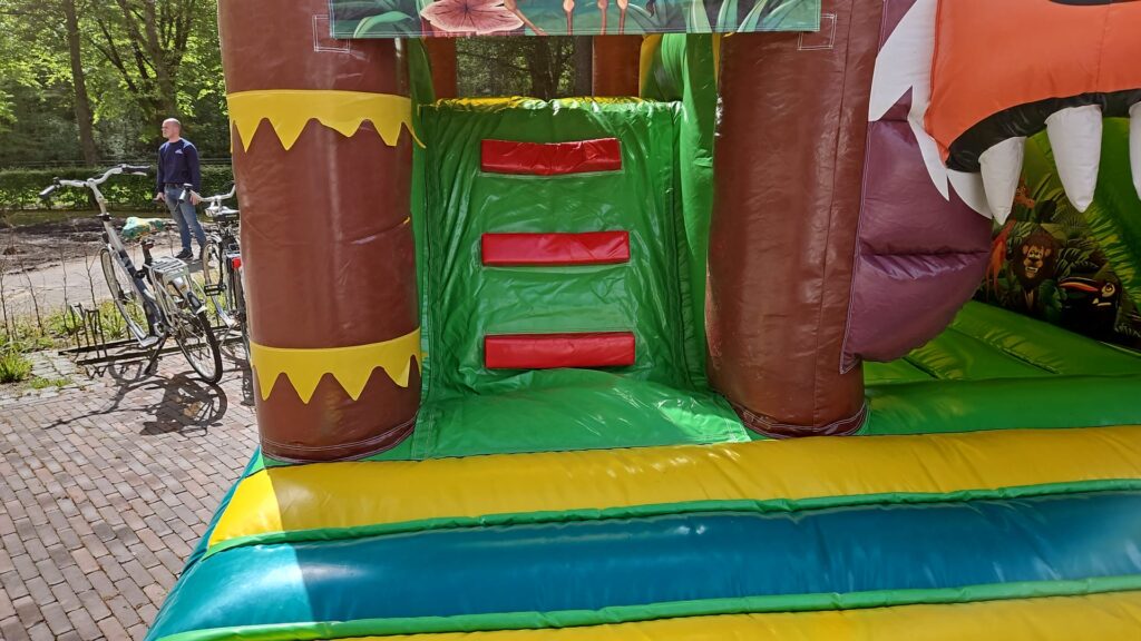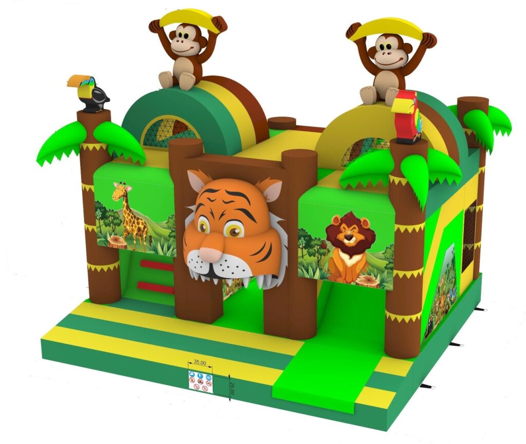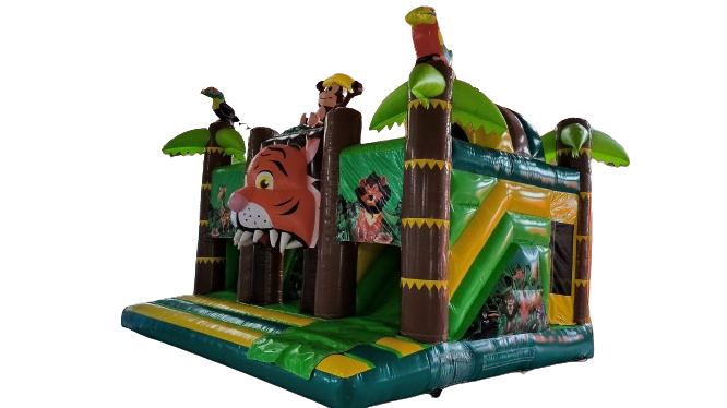 Wanneer je een Jungle feestje wilt organiseren dan zorgt ons grote Jungle springkussen met glijbaan voor een betoverende en adembenemende ervaring. Laat de fantasie van kinderen tot leven komen terwijl ze springen, glijen en spelen op dit kleurrijke en unieke Jungle springkussen .