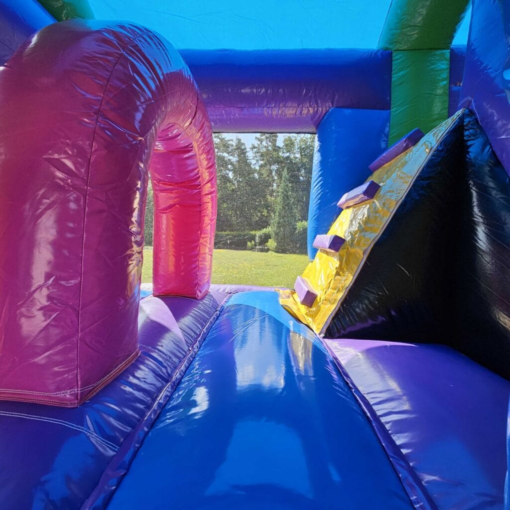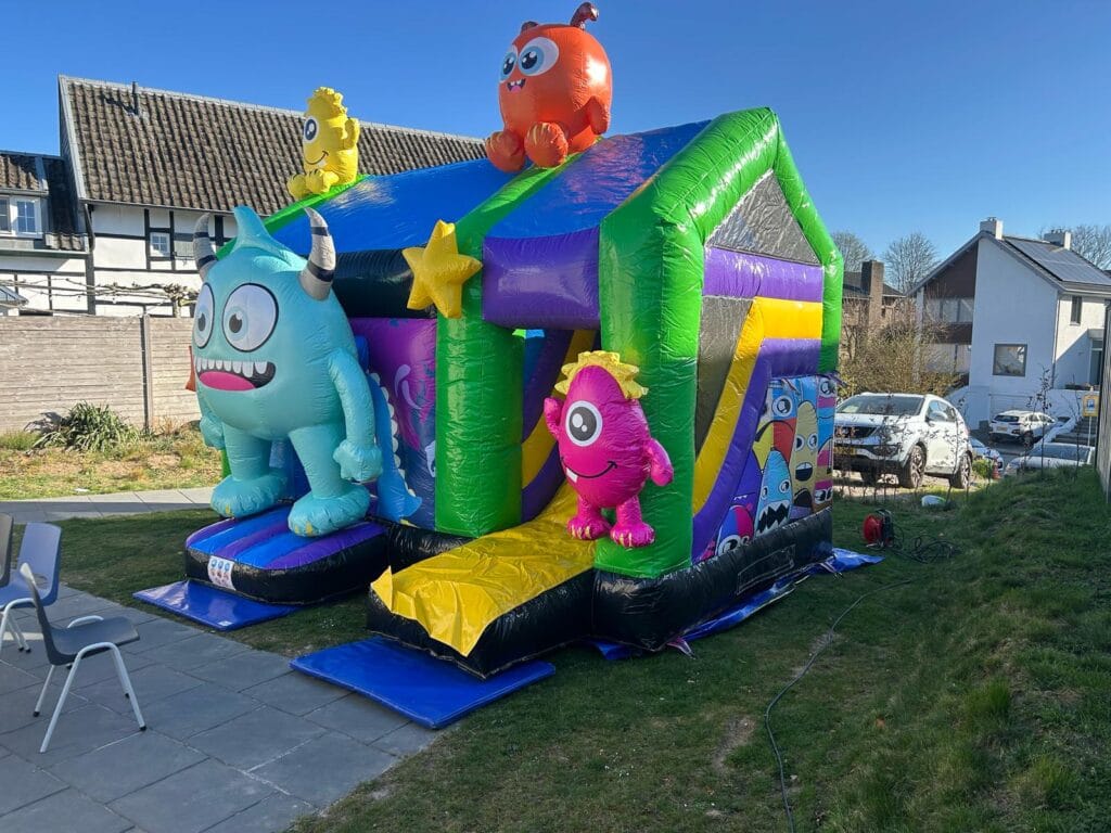 Dit bontgekleurde springkussen trekt meteen de aandacht. Van de buitenkant is het nog een verrassing wat er binnen allemaal te beleven valt. Spring als een echt Monster. Het overdekte springkussen Multiplay Monster is een uitgebreid springkussen met mooie obstakels en een glijbaan. De multiplay Monster richt zich met name op de kleinere kinderen tot bijv. 10 jaar. Maar ook de grotere kinderen zijn natuurlijk welkom om door dit luchtkasteel te klimmen en te klauteren! Voorzien van regen / zonnen dak en een glijbaan.