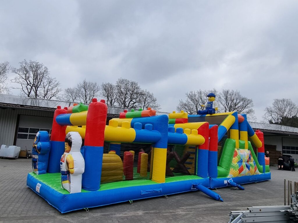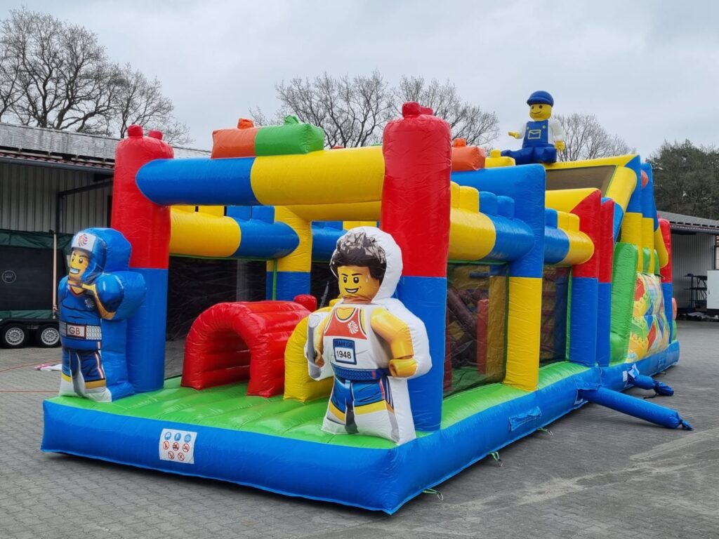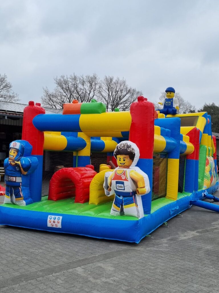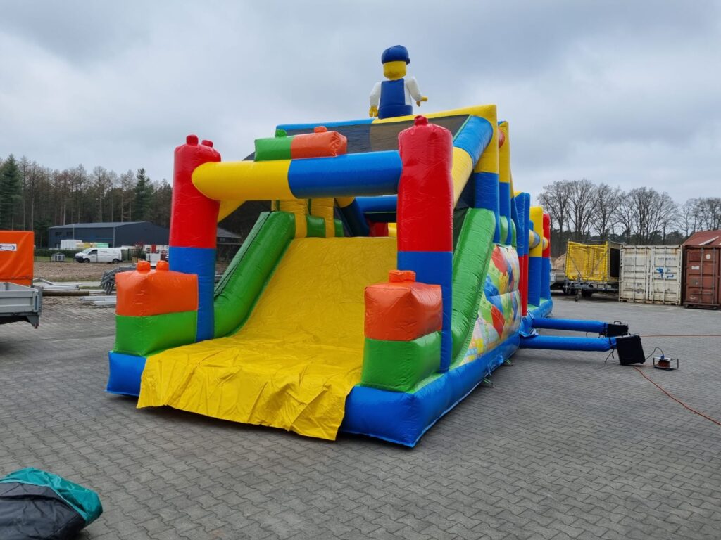 Wie is er nu niet bekend met het Lego mannetje? Springkussen Lego is een geweldig gethematiseerd springkussen mét glijbaan! Glij onder het legopoppetje door en klim snel weer op het springkussen om lekker te kunnen springen!