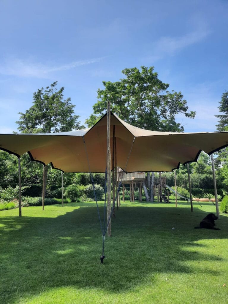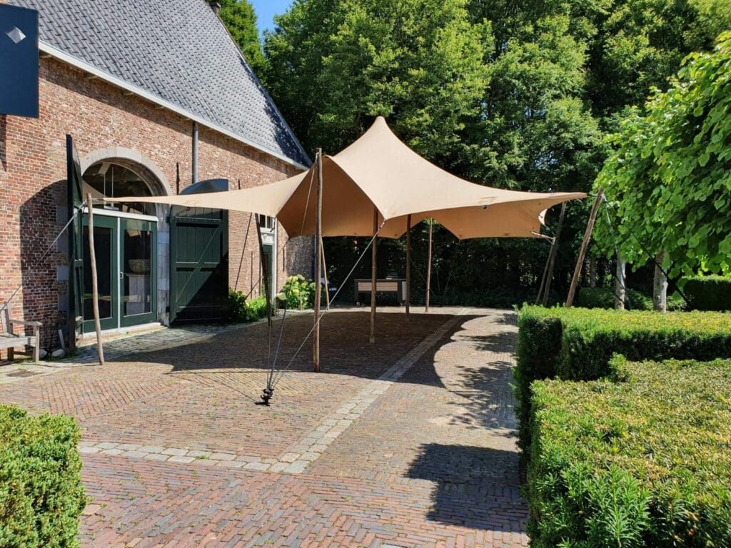 Wij bouwen in regio Limburg en daarbuiten, uitsluitend met de hoogste kwaliteit stretchtenten die volledig tot KIWA en TÜV gecertificeerd zijn tot windkracht 9. Het 4-laags stretchdoek van 800 gr / m² heeft een matte uitstraling en absoluut de sterkste kwaliteit. Het stretchdoek is brandwerend, UV-protected, winddicht én waterdicht. Luxe Stretchtenten geven een exclusieve uitstraling door gebruik van het allermooiste materiaal zoals gelakte Eucalyptus palen met sierlijke knoppen.