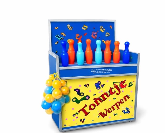 Probeer de kegels van de balk te werpen zodat deze in de opvangbak vallen.