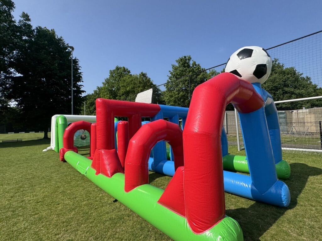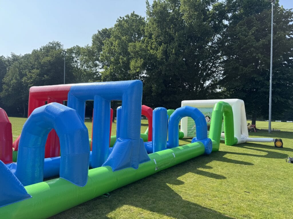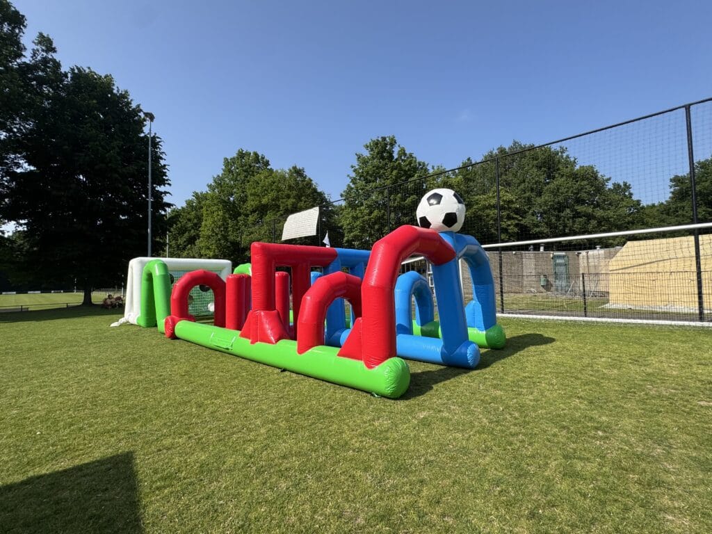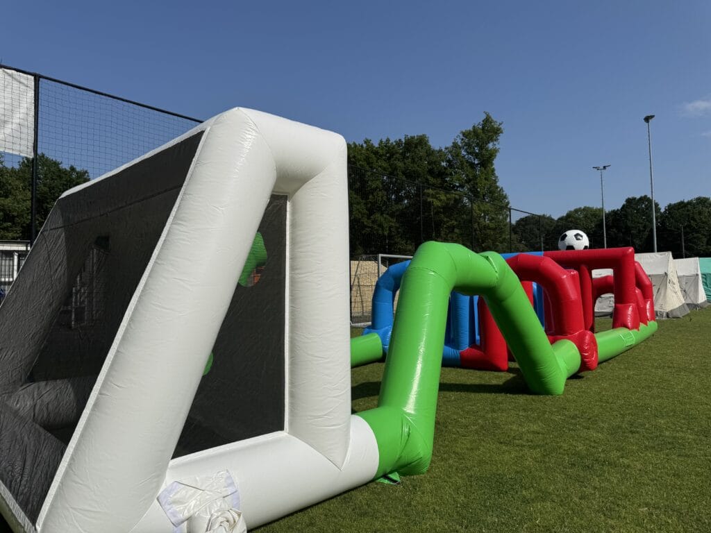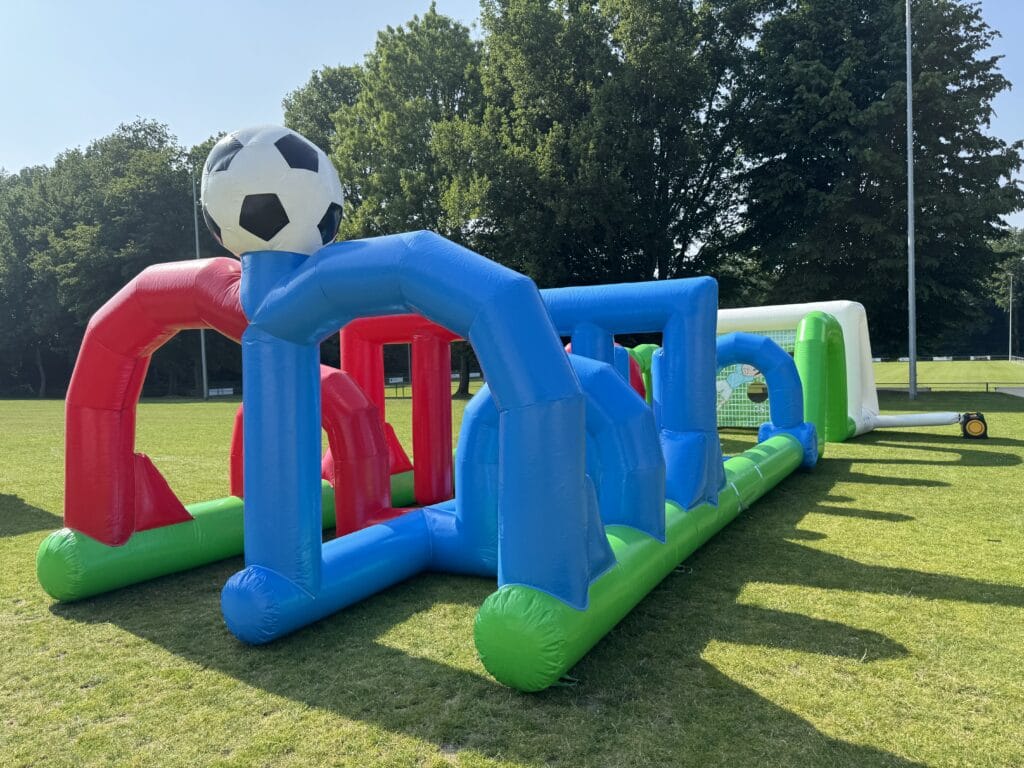Voor alle voetbalfans, dit mooie grote dribbel en speelveld. Wie is het snelste op dit parcours?